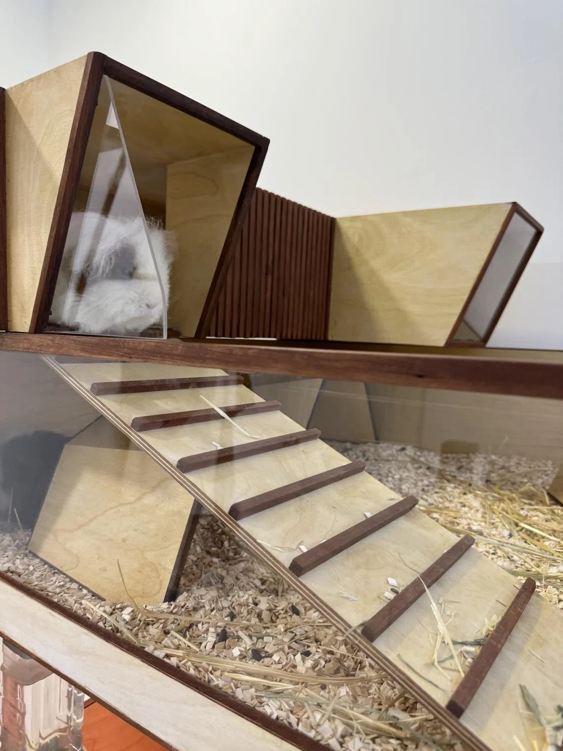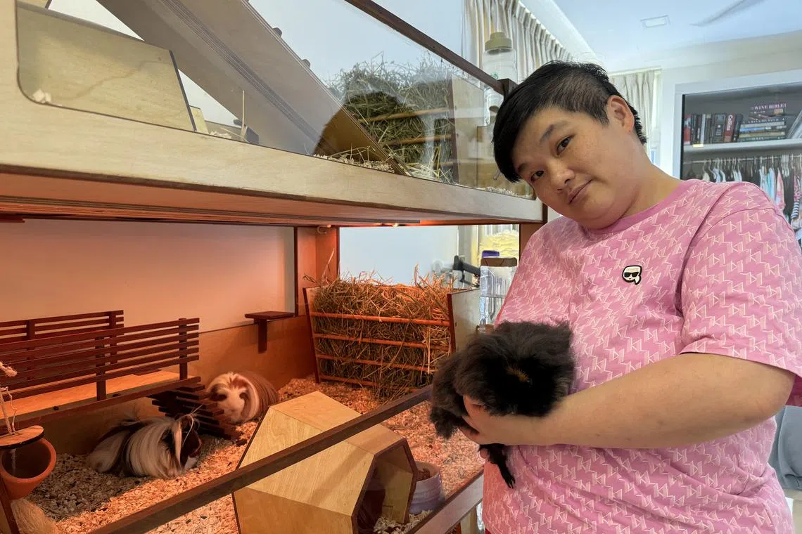 Now, all seven guinea pigs live in an interconnected, three-level pet house made by Uncommon Goods Singapore, a local carpentry workshop which specialises in designing and building bespoke pet habitats.