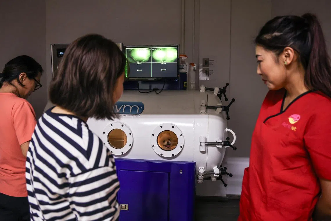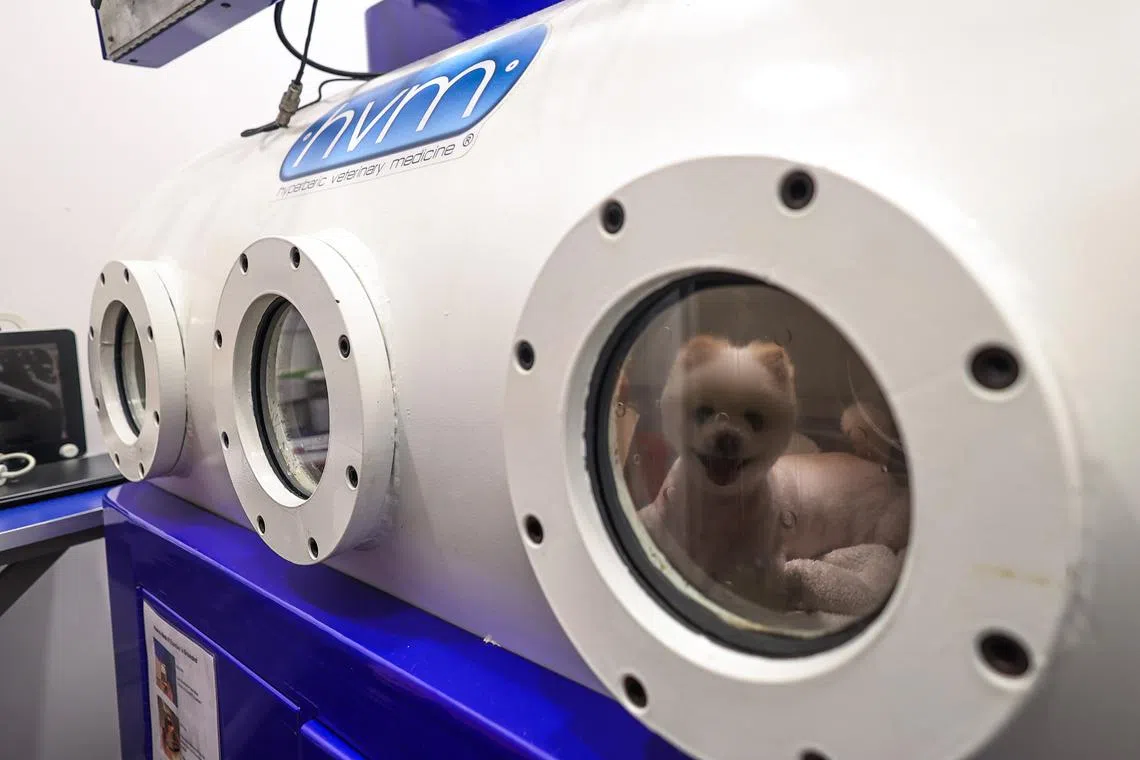 Rehabilitation veterinarian Sara Lam, 36, who is the founder of RehabVet, adds that it is the only medical-grade chamber in Singapore for animals and is big enough to fit a Great Dane.
