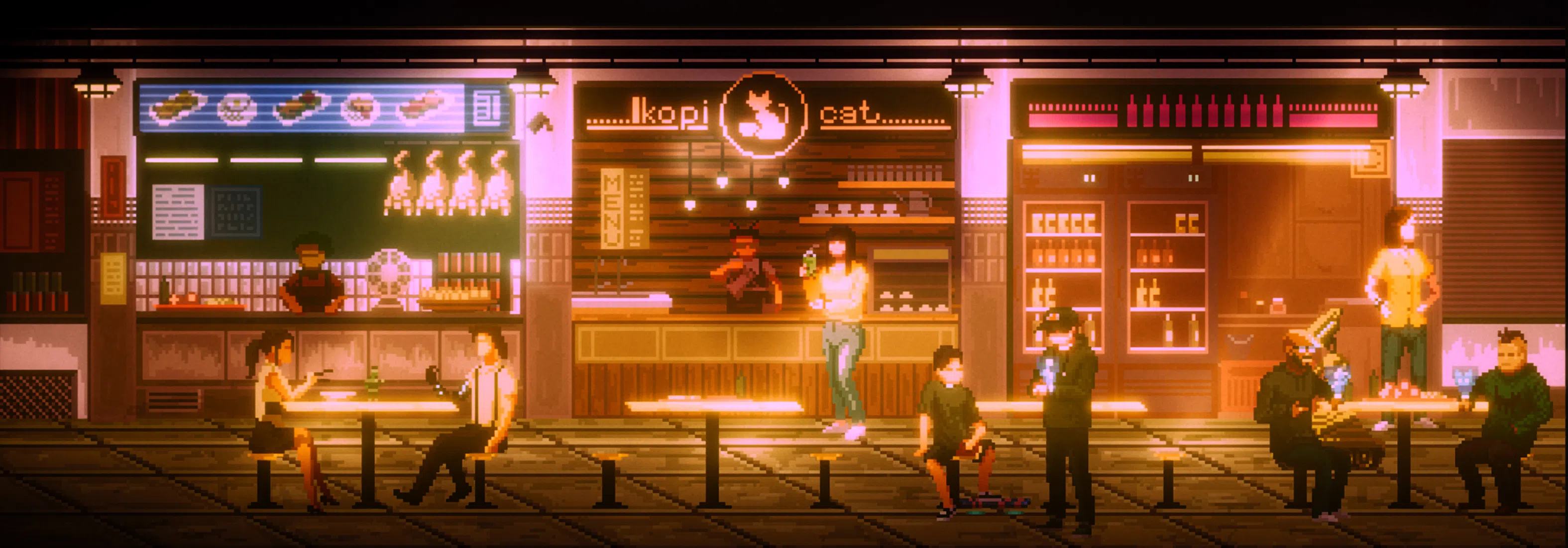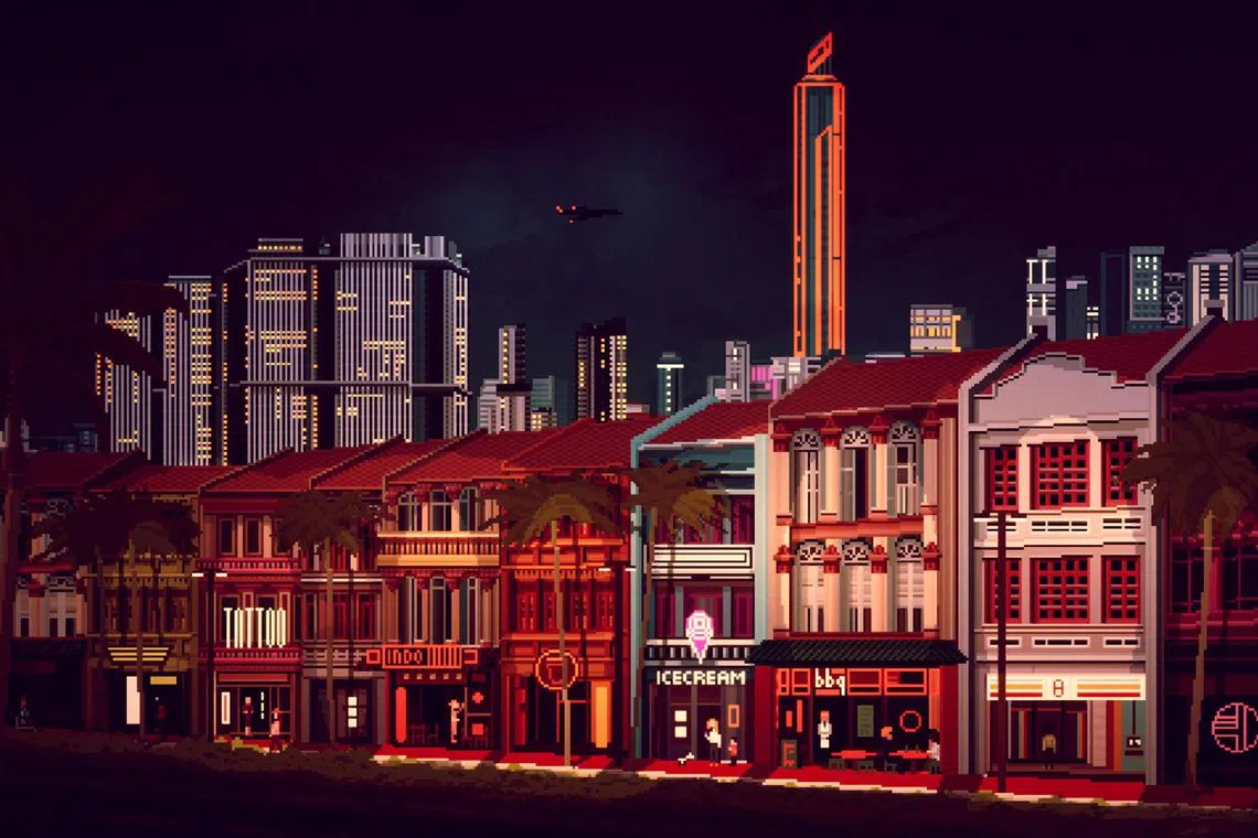 Just starting up the game presents players with a cinematic introduction that takes them through a lovingly crafted and pixelated re-creation of North Bridge Road between Clarke Quay and the Civic District, in glimmering and cyberpunk style.