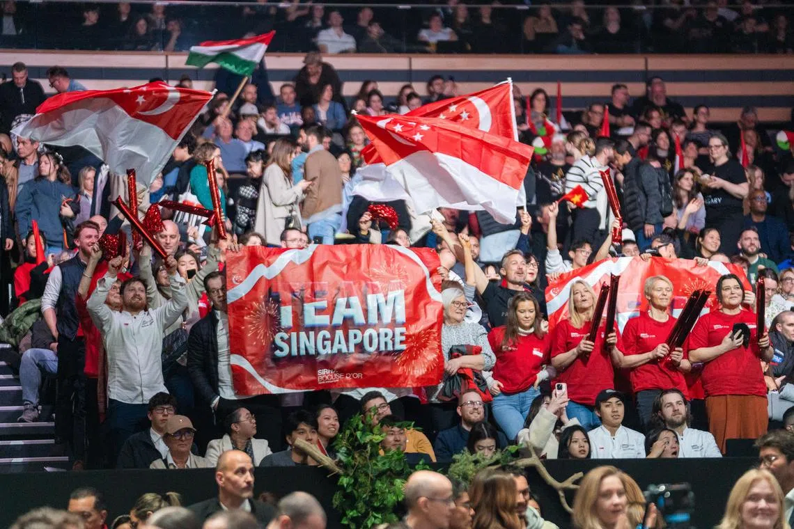 Team Singapore supporters cheering for Mathew Leong at the Bocuse d’Or final.