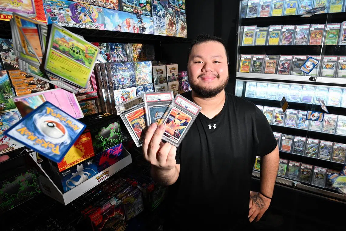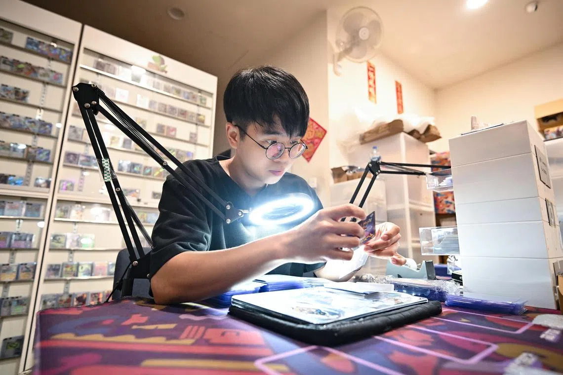 Mr Xavier Sin, 25, is a grading consultant who evaluates the condition and quality of Pokemon cards at Concept City, a card shop.
