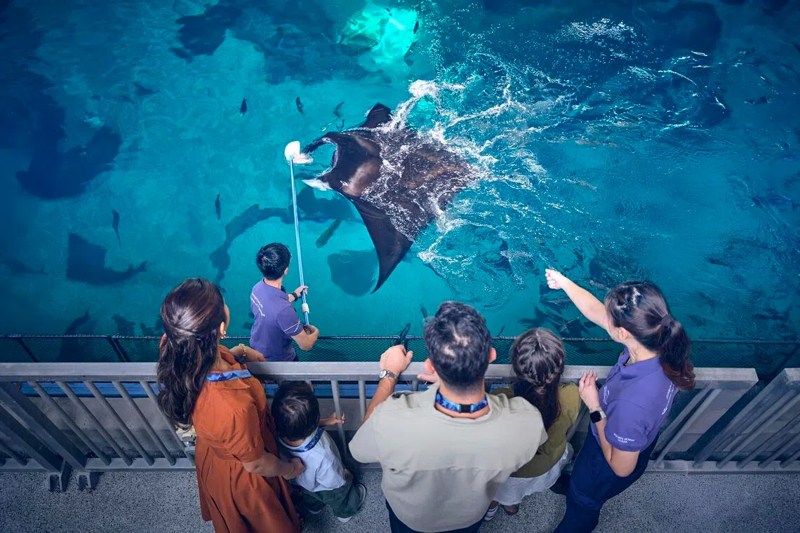The highlight is watching an animal-care specialist feeding the manta rays at the Open Ocean Habitat support area.