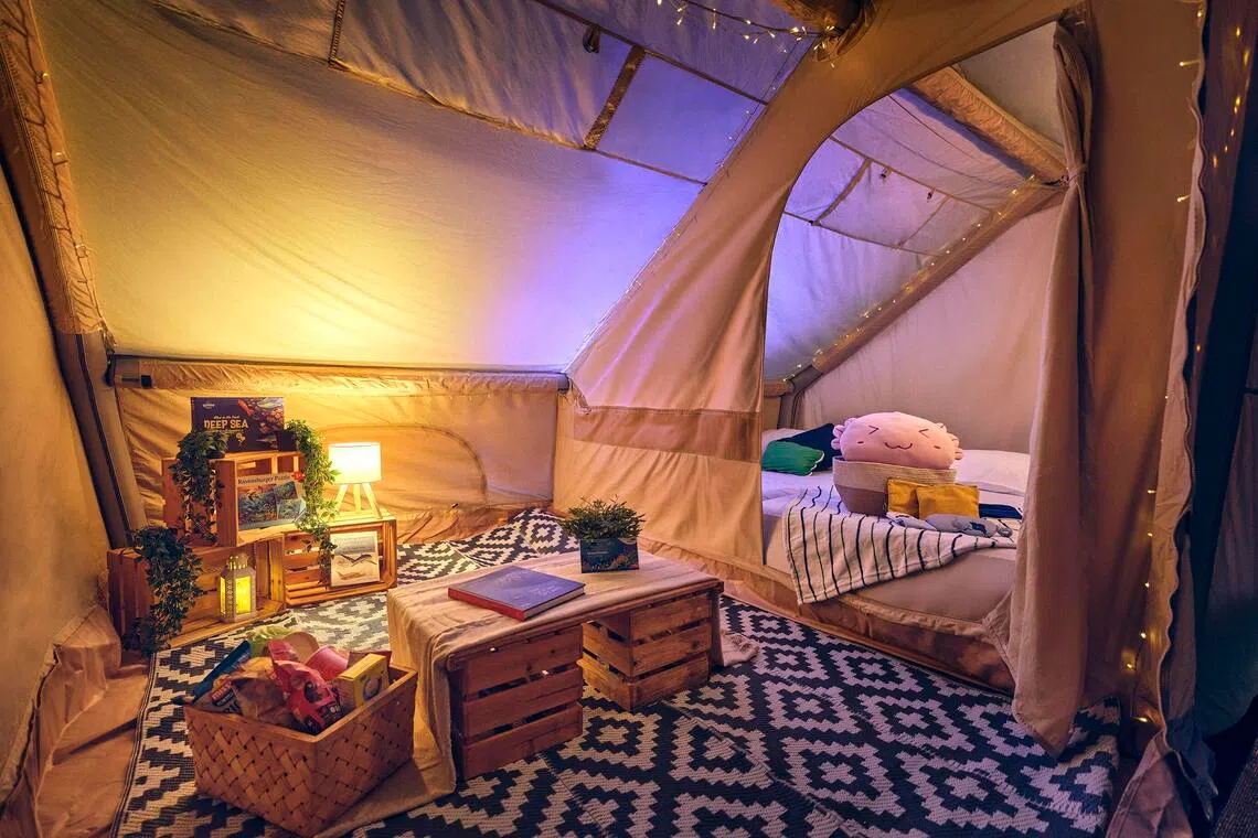 Glamping at the Singapore Oceanarium lets one discover the wonders of the sea from a cosy tent.