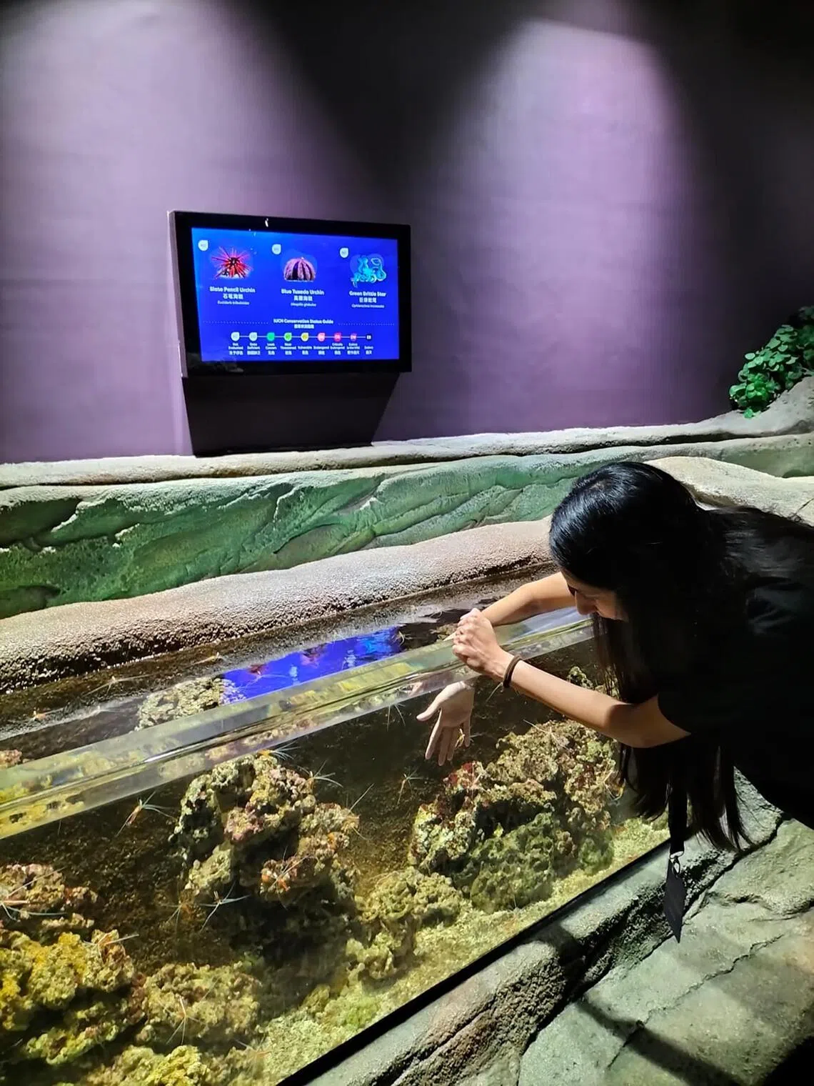 At the Singapore Coast section, I cautiously dip my hands into a shallow tank where tiny cleaner shrimp dart about.
