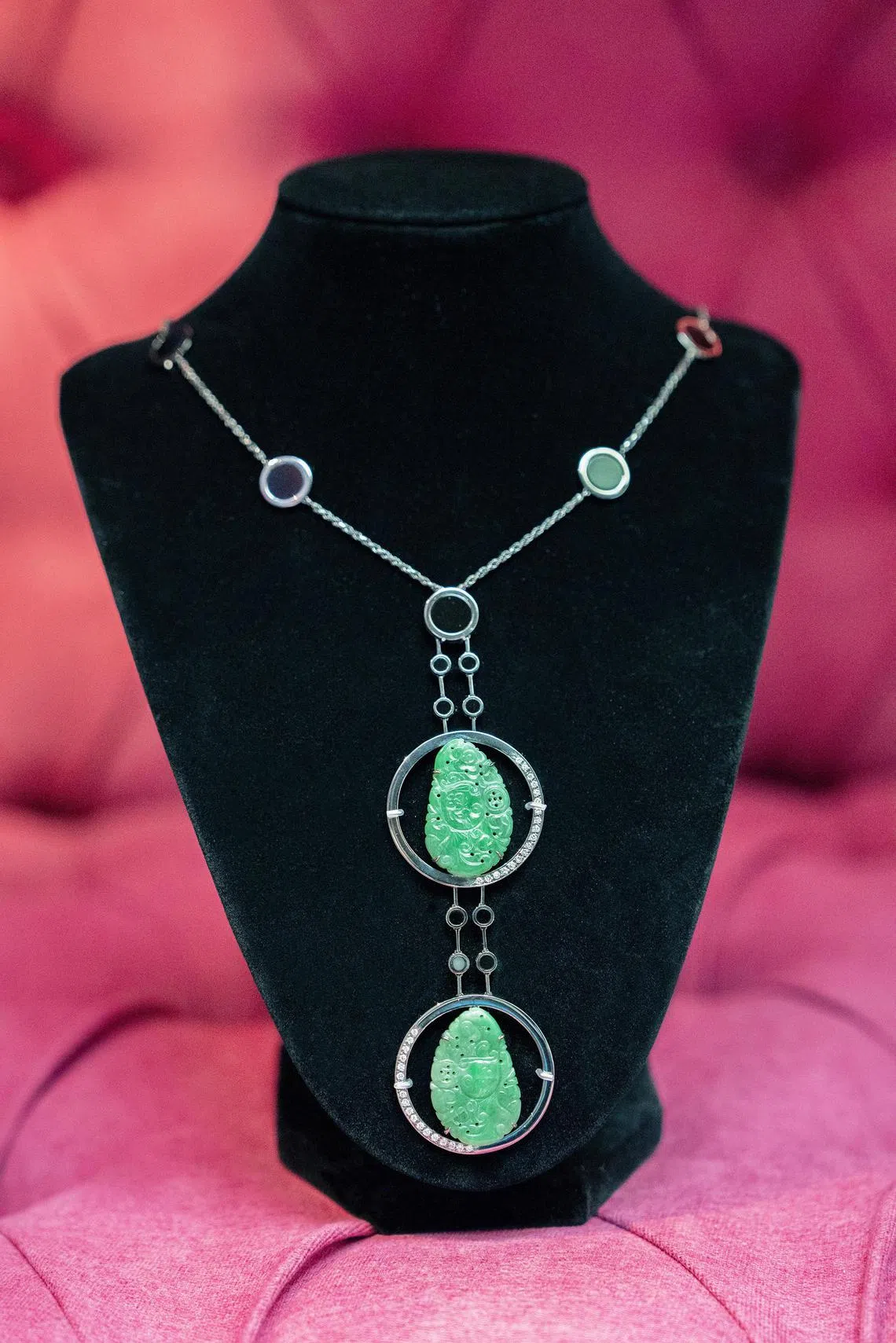 The Modernised Heirloom by State Property. On loan from a client, this necklace was refashioned from a pair of heirloom jade earrings.