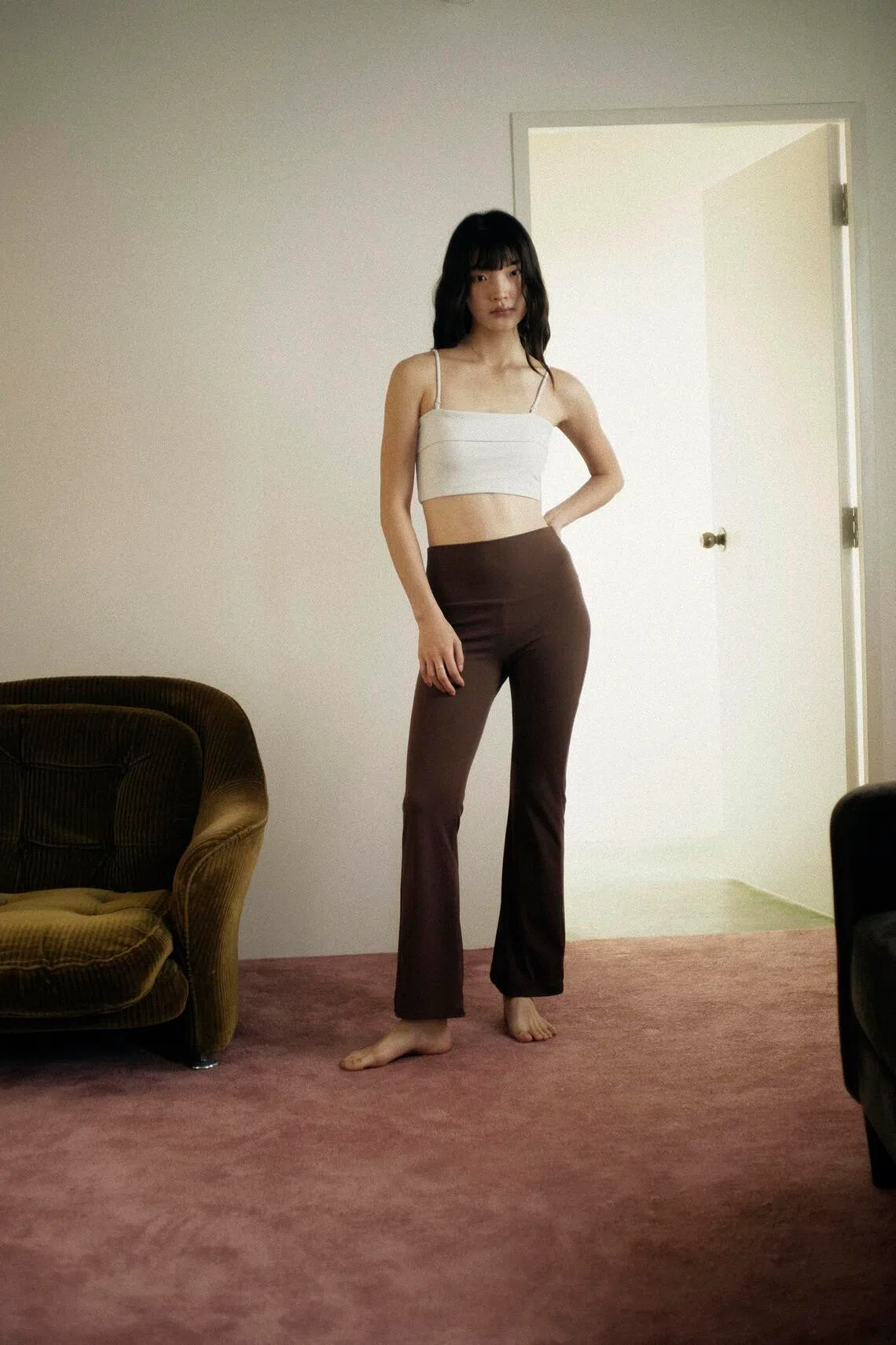 Rise Rise Foldover Bra ($59) and High Rise Flare Pants ($65).