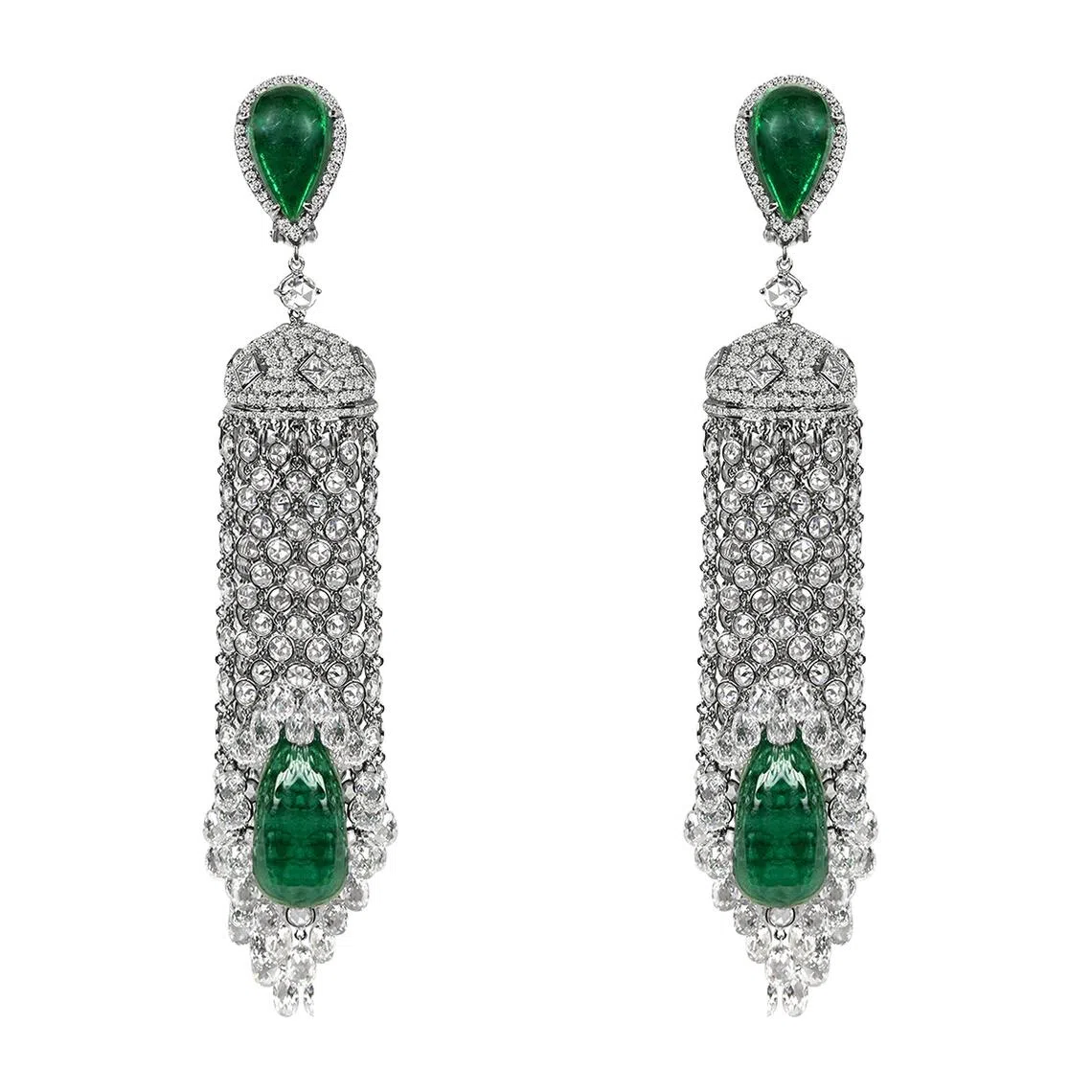 The late American film star Elizabeth Taylor was a fan and collaborated with Piranesi to design these cascading earrings, which spotlight Colombian emeralds surrounded by 50 carats of diamonds.