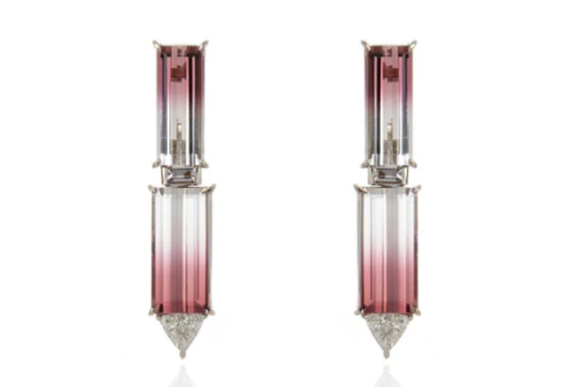 Featuring 18K gold with 19 carats of tourmaline and diamonds, these earrings are part of a collection that uses gemstones from the tourmaline-rich Cruzeiro mine in Minas Gerais, Brazil.