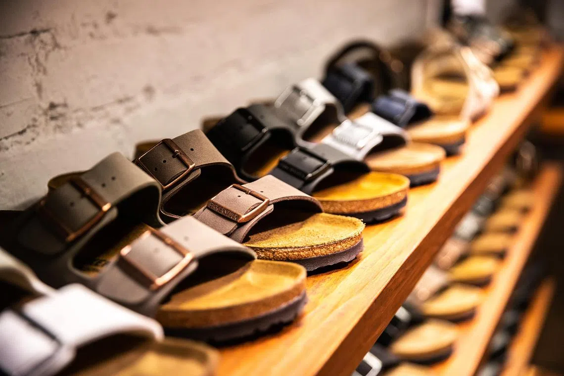 Footwear is displayed at a Birkenstock store on Oct 10, 2023, in Venice, California.