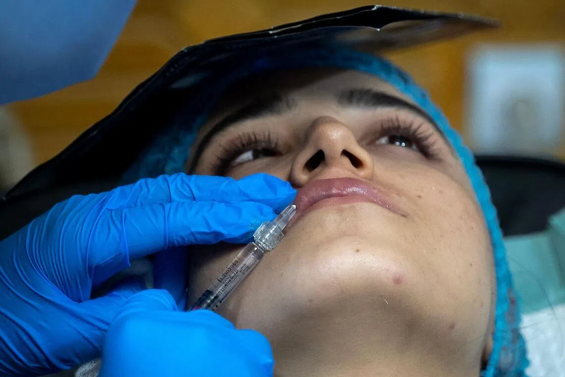 An Afghan woman getting fillers in her lips at a beauty clinic in Kabul on Aug 13.