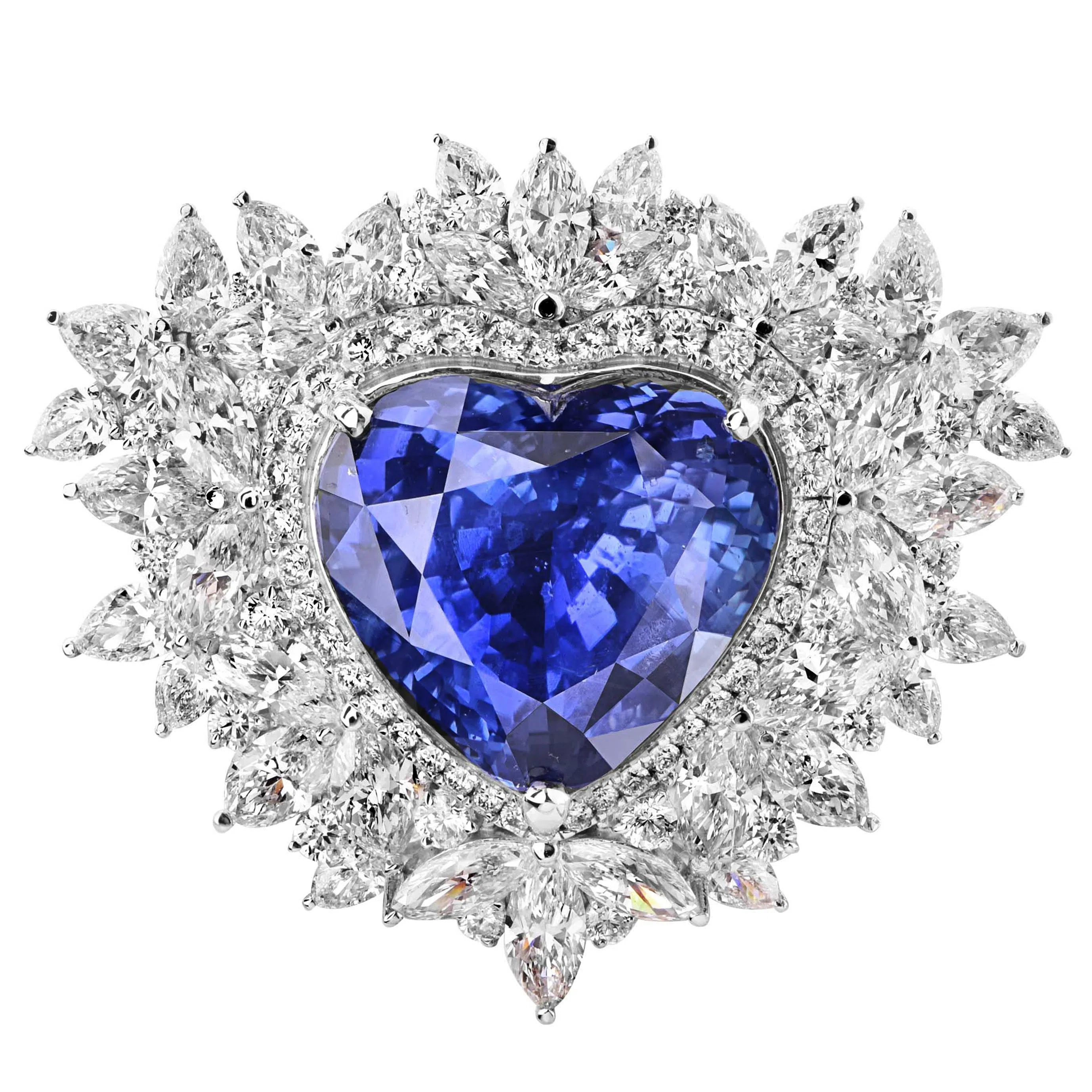 This 23.73-carat unheated sapphire ring is set with white diamonds.