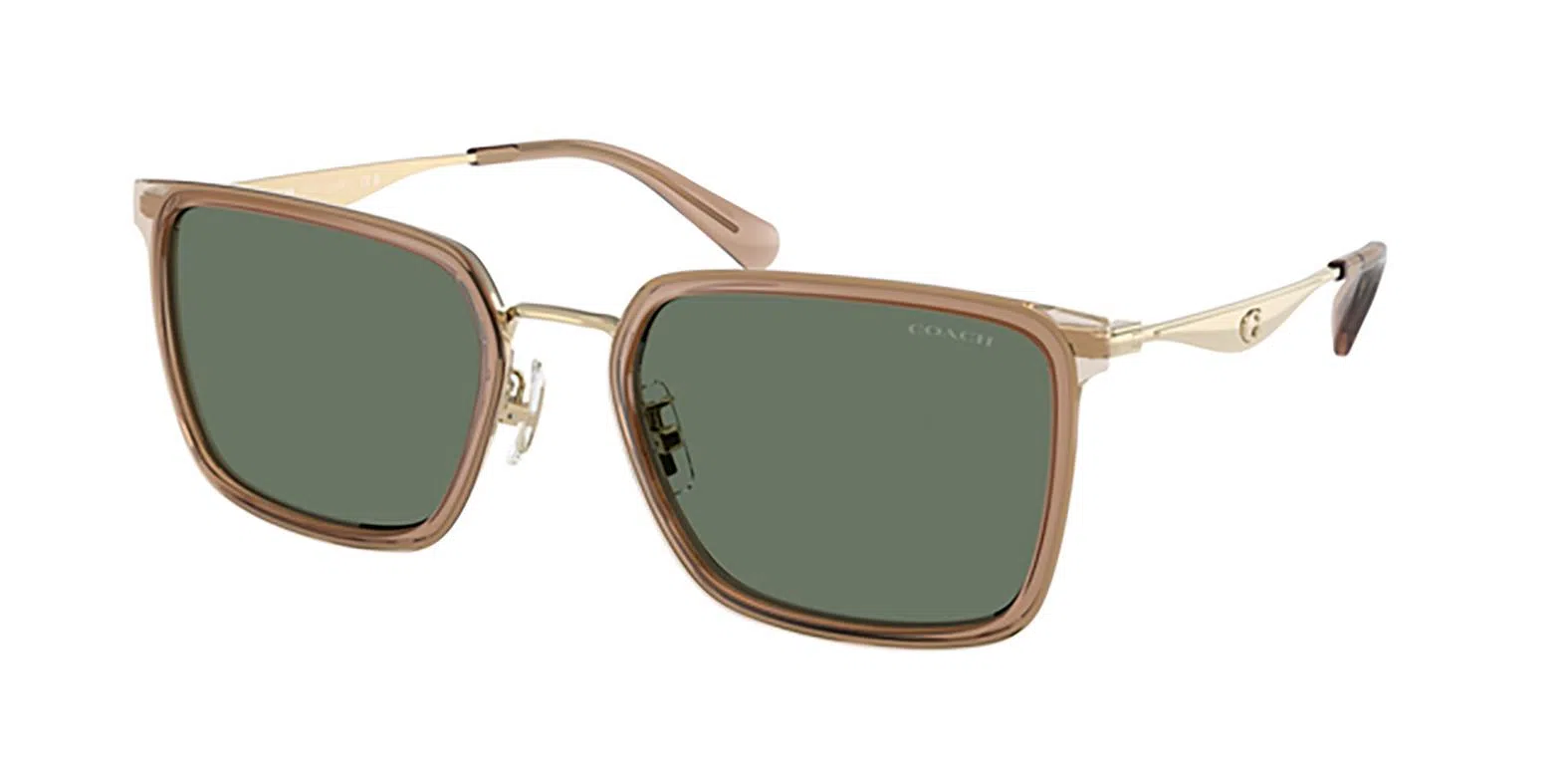 The Metal Tabby sunglasses by Coach blend heritage and elegance with sleek metal frames, the brand’s “C” hardware, warm light brown lenses and natural Mocha Mousse undertones.