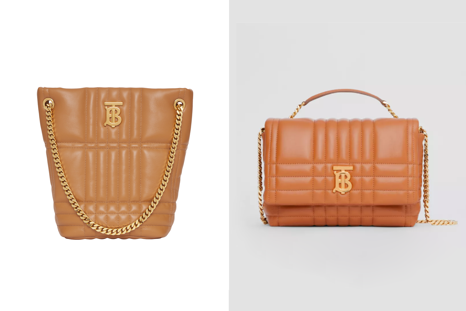 The new small quilted lambskin Lola bag, $2,890, features a matte gold chain strap and the Thomas Burberry monogram in a matching shade to its camel exterior.