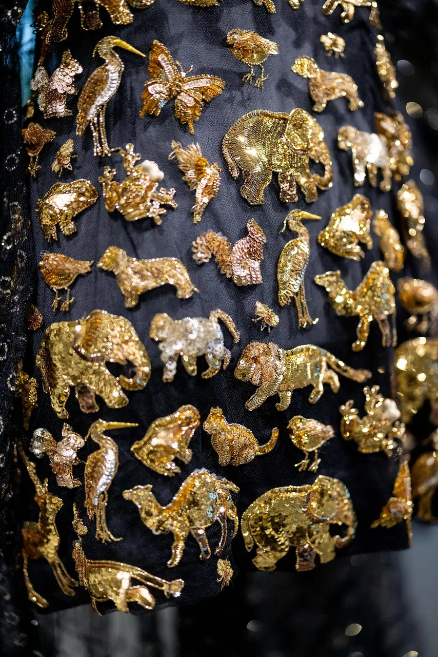 A dress from Chanel’s couture collection features plenty of hand-embroidered animals.