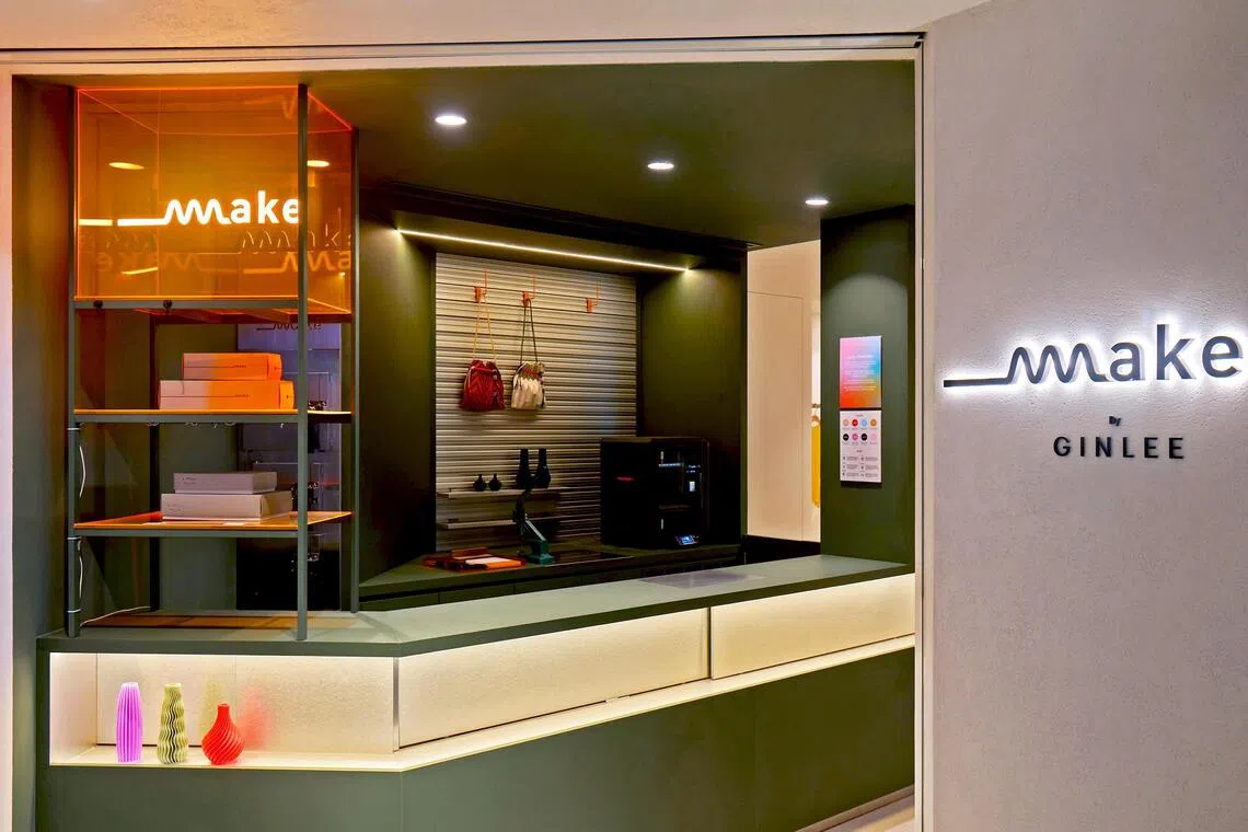 The boutique also houses its on-demand Make by Ginlee service, where customers can design and create their own pleated bags (from $58) on the spot in under 20 minutes. There is also a customisable 3D-printed charm creation activity (from $10).