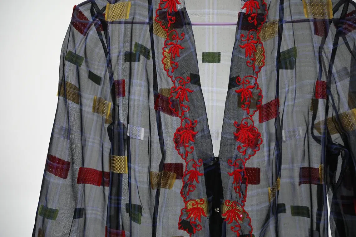 The second kebaya features embroidery of a rabbit jumping into a hole, which Mr Wong says is a depiction of the idiom “going down the rabbit hole”, taken from English author Lewis Carroll’s Alice In Wonderland.