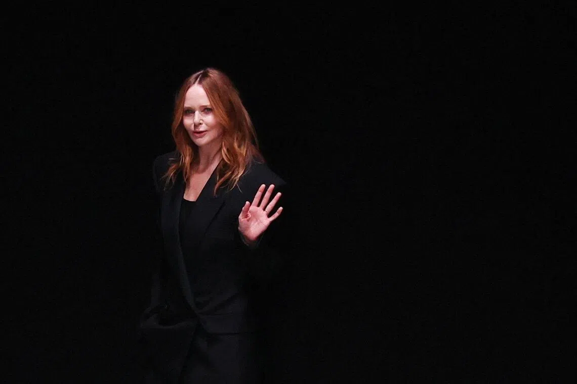 Designer Stella McCartney waves at the end of her Spring/Summer 2026 Women’s ready-to-wear collection show.