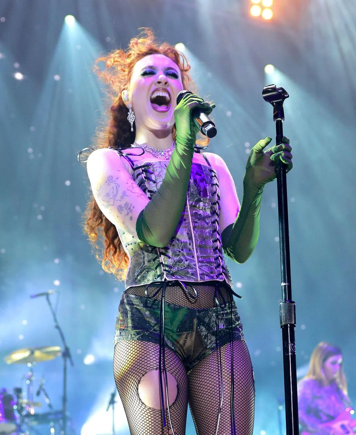 Chappell Roan performing at the Chappell Roan: The Midwest Princess Tour at FirstBank Amphitheater in Franklin, Tennessee, on Oct 1.