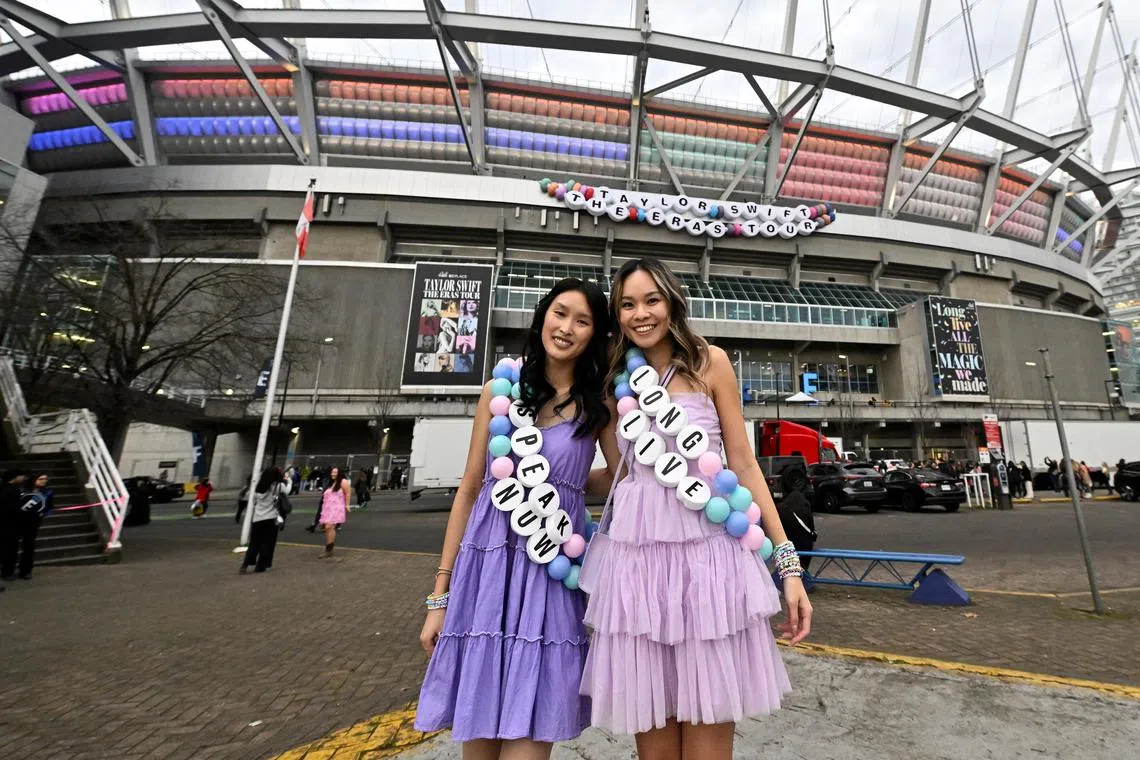 Swifties Emily Feng and Tiffany Law in Taylor Swift-inspired friendship bracelets, as her record-breaking The Eras Tour comes to an end with the first of her three concerts, in Vancouver on Dec 6.