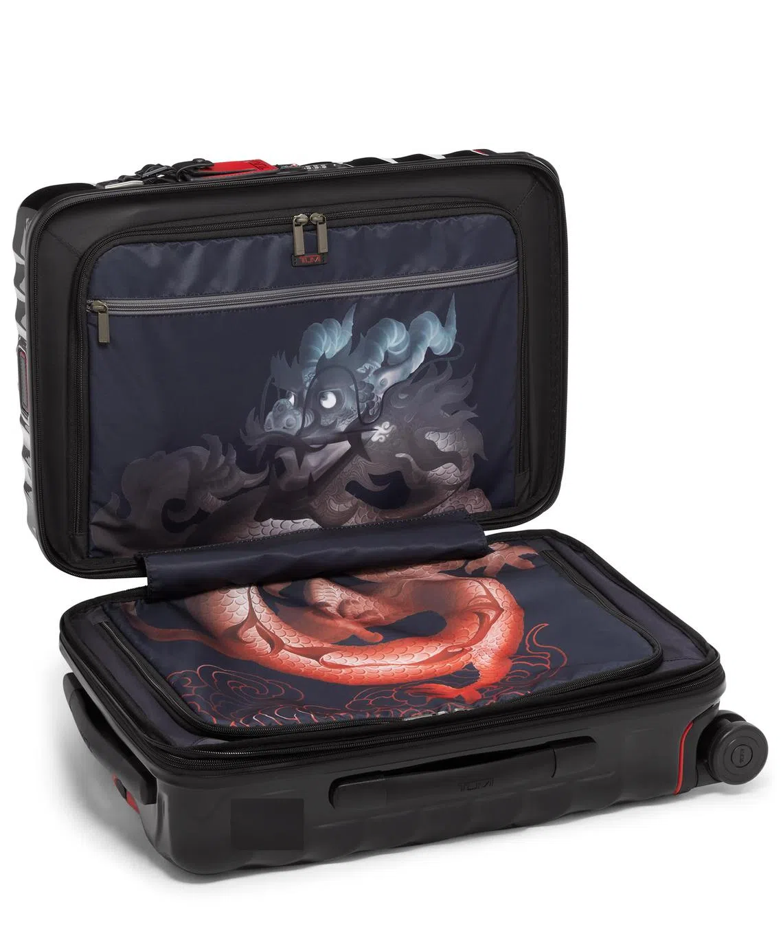 Tumi 19 Degree International Expandable 4 Wheeled Carry-On in Dragon Print ($1,130).