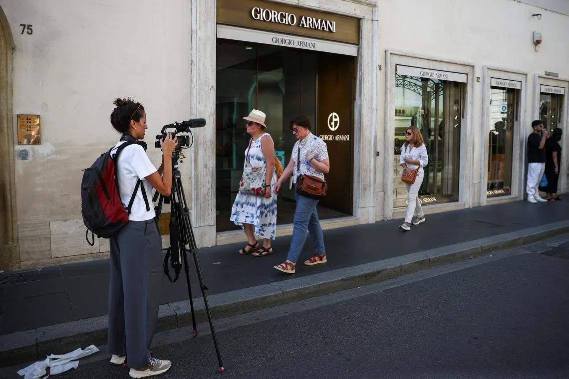 A woman filming outside the Giorgio Armani store in Rome on Sept 4, following news of the designer’s death.