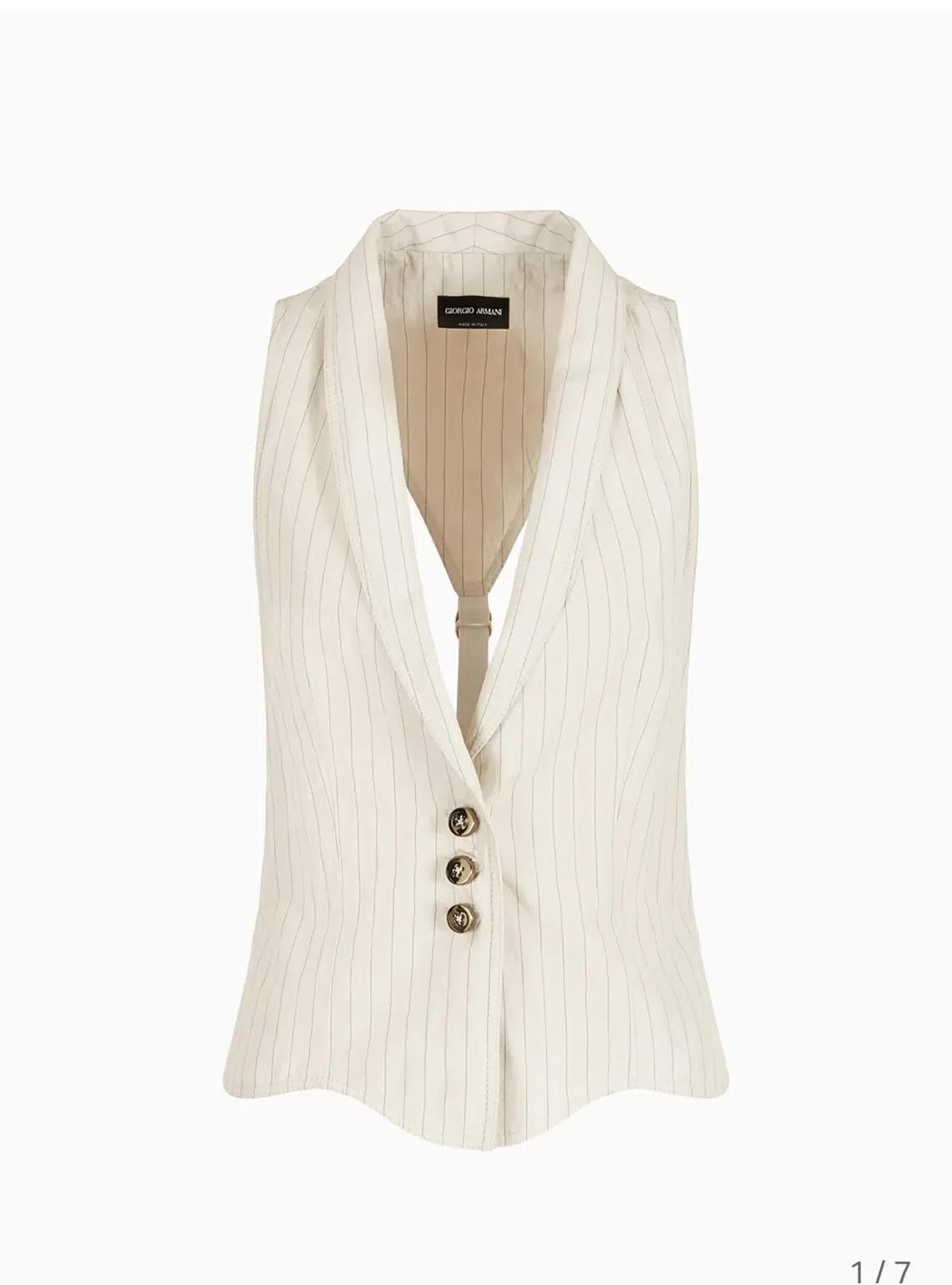 Pinstriped cotton and linen gilet, Giorgio Armani, $1,850.