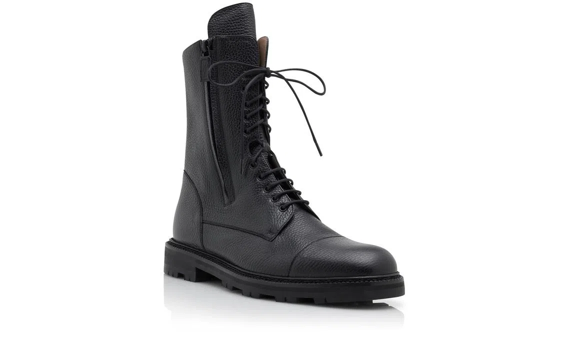 Lugato black calf leather military boots, Manolo Blahnik, $1,890.