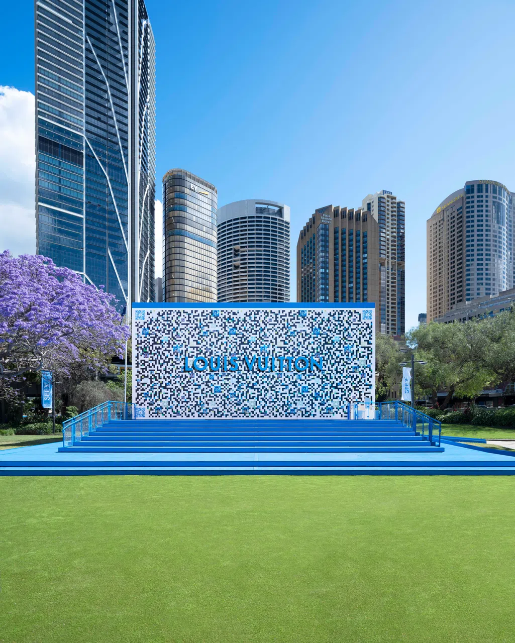 Its blue and white set-up is hard to miss, fashioned like a giant QR code and sited next to the Museum of Contemporary Art along the city’s popular Circular Quay.