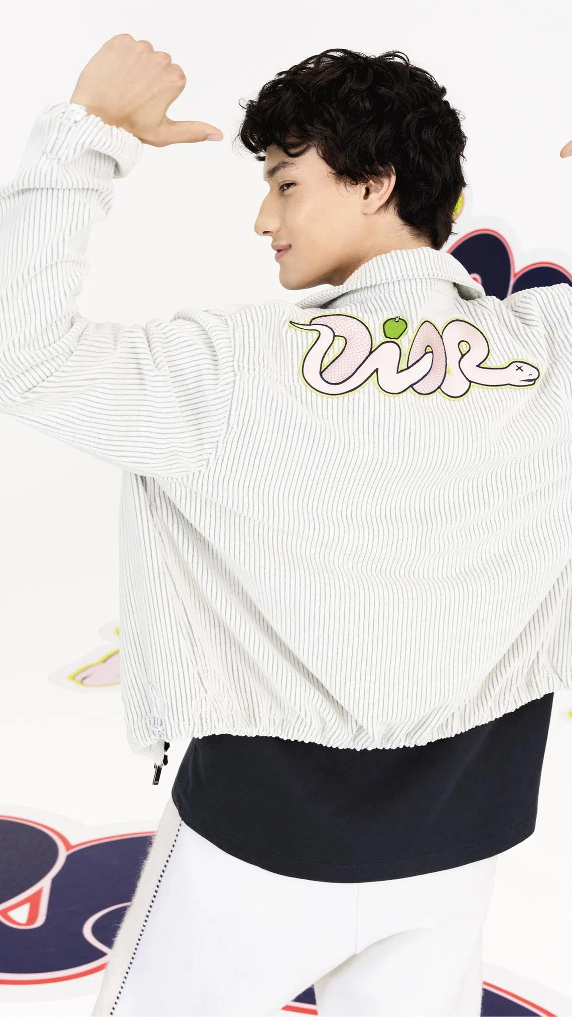 You can also find the snake coiled into the brand’s iconic “CD”, adorning jackets, sports ensembles and varsity jackets.