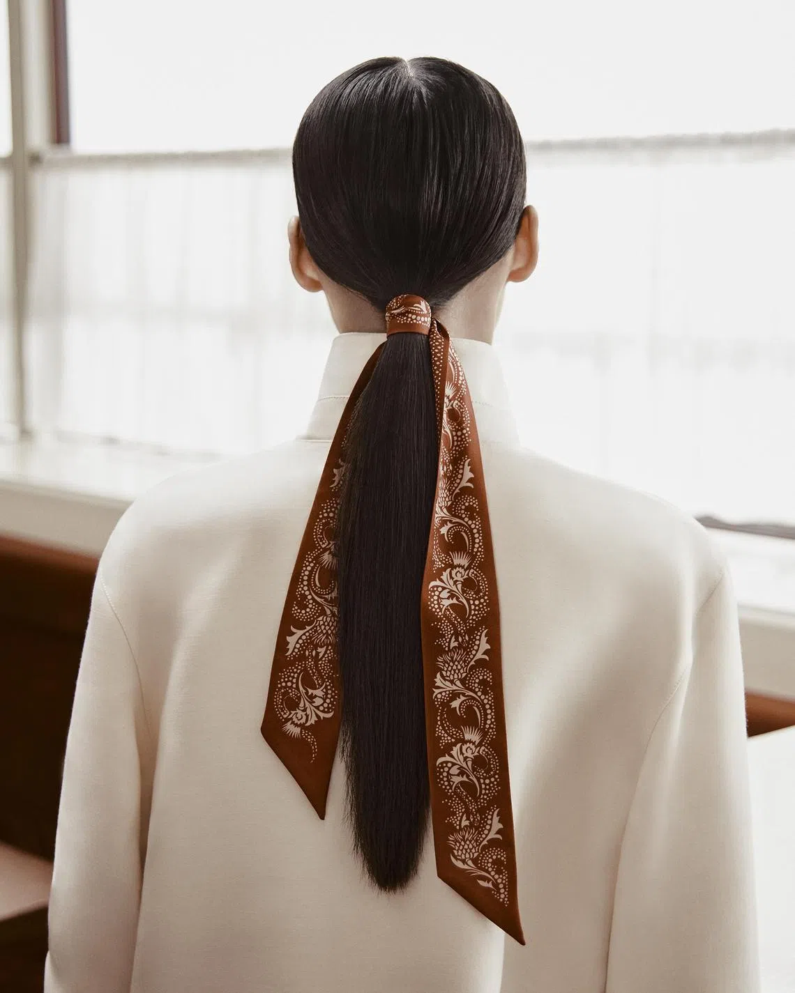 The Silk Cardo Snake Tie Band ($350) is embellished with prints of a concealed serpent hidden among Loro Piana’s fiore di cardo, or thistle flower. Meanwhile, the Grande Unita scarf – renamed the Cardo Snake Scarf ($2,020) for this capsule – gets a discreet update with a tonal snake motif that could pass for spring florals.