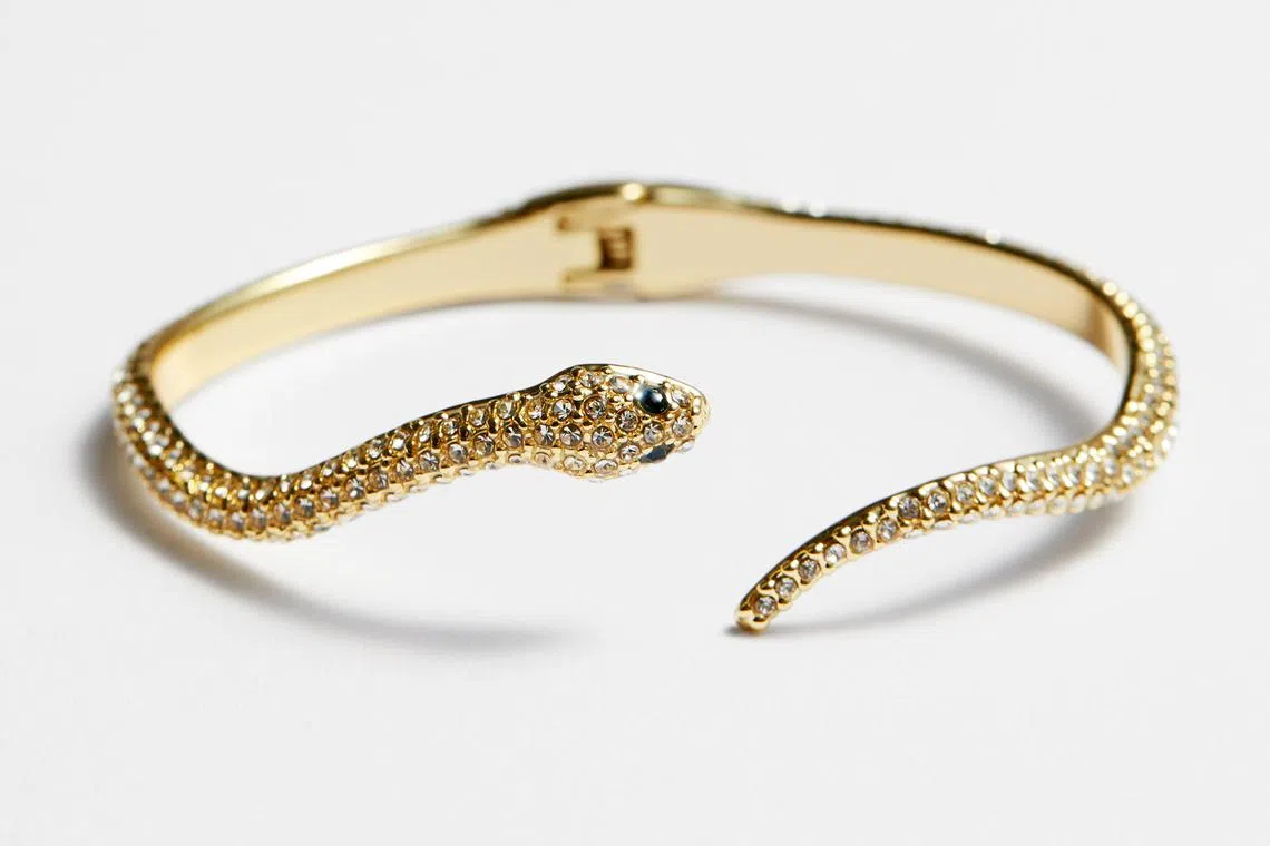 There are pendants, bracelets, earrings and a brooch in gold-tone, rose gold-tone and rhodium plating. The standout piece is a gold-tone plated Snake pendant ($279) featuring a coiled snake embellished with Swarovski Zirconia, finished with its tail wrapped around a single Swarovski Crystal Pearl.