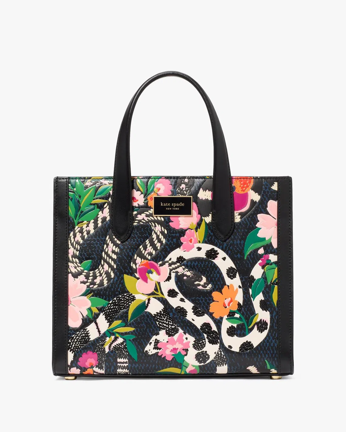 Kate Spade New York Manhattan Snake Print Embossed Leather Small Tote in Black Multi ($700).