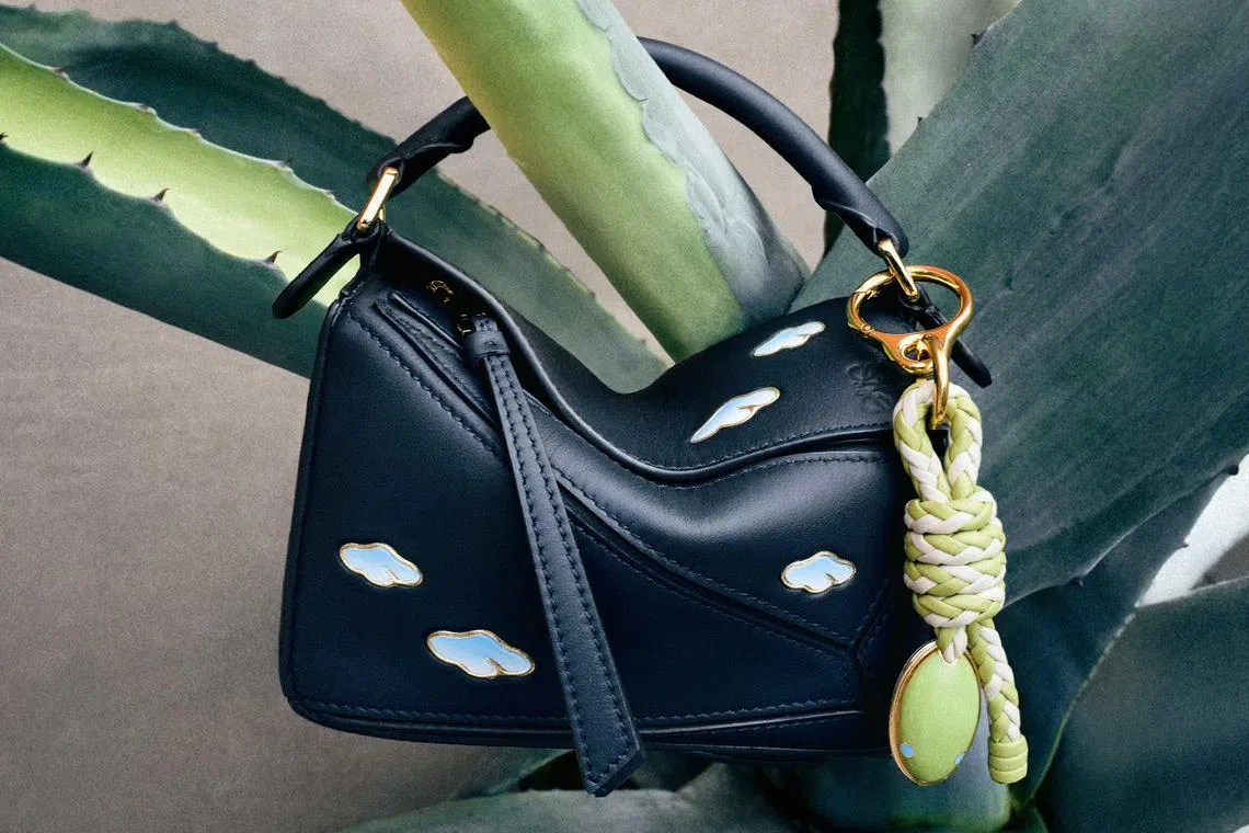 Loewe Mini Puzzle Bag in Nappa Calfskin ($3,990) and Snake Knot Charm in Classic Calfskin ($950).