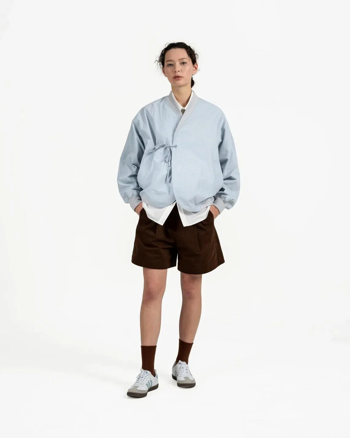 It features the brand’s signature East-meets-West aesthetic, with a soft wrap-around ribbed collar, hidden side-tie drawstring and asymmetrical detailing for an organic silhouette. Stay cosy in the crinkly cotton-nylon blend, with half raglan sleeves that add volume and ease, and a button tab inside for a snug fit.