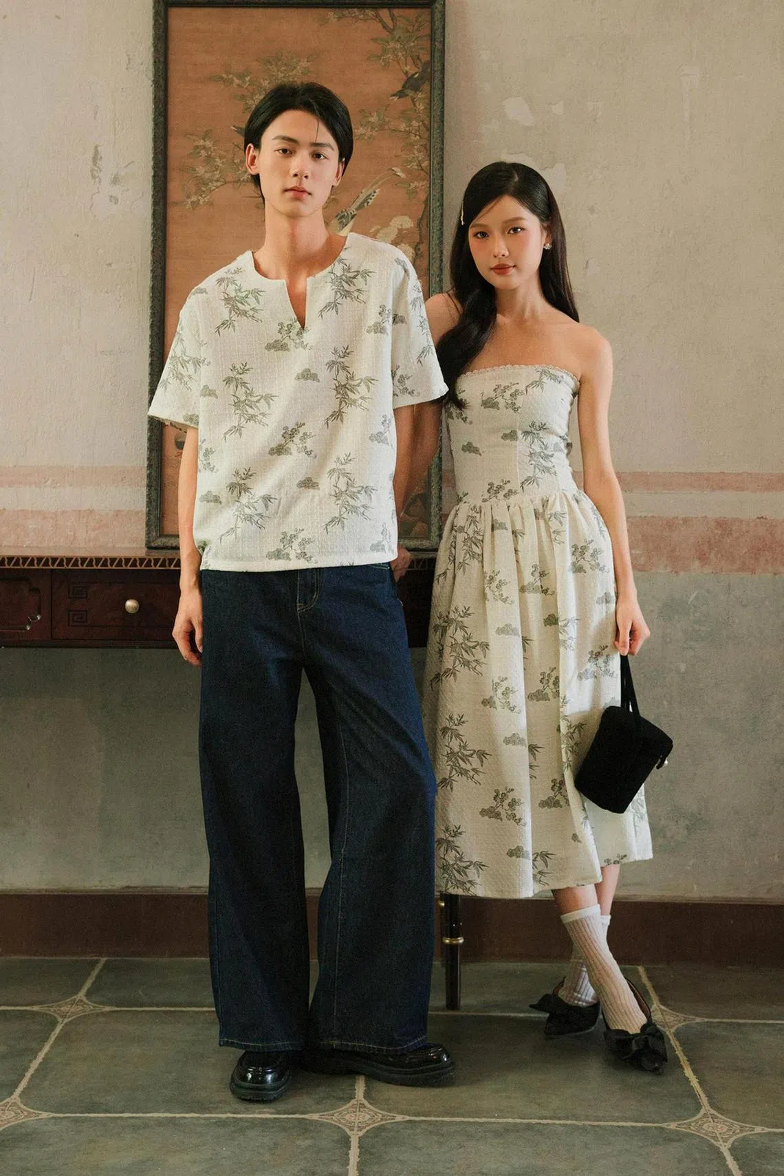 For guys who want to look put together without a stuffy collar, the Lukas Top ($43.90) in a variety of prints is a slip-on V-neck tee in breezy cotton linen. The same Misty Willow print is also found on the Liliana tube dress ($65.90) for couples to match in style.