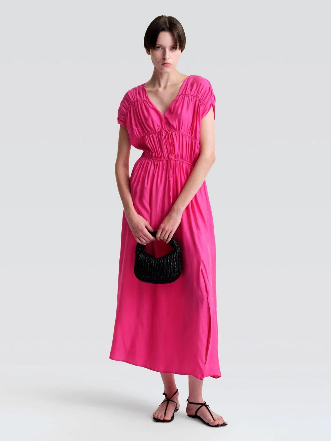 Nothing says “look at me” like hot pink. The Cupro Morocco Dress ($209) in fuchsia is made from luxe cupro shirred through the bodice for a close, yet flexible, fit. The carefree silhouette and floaty hem also make it a good dress to take on holiday.