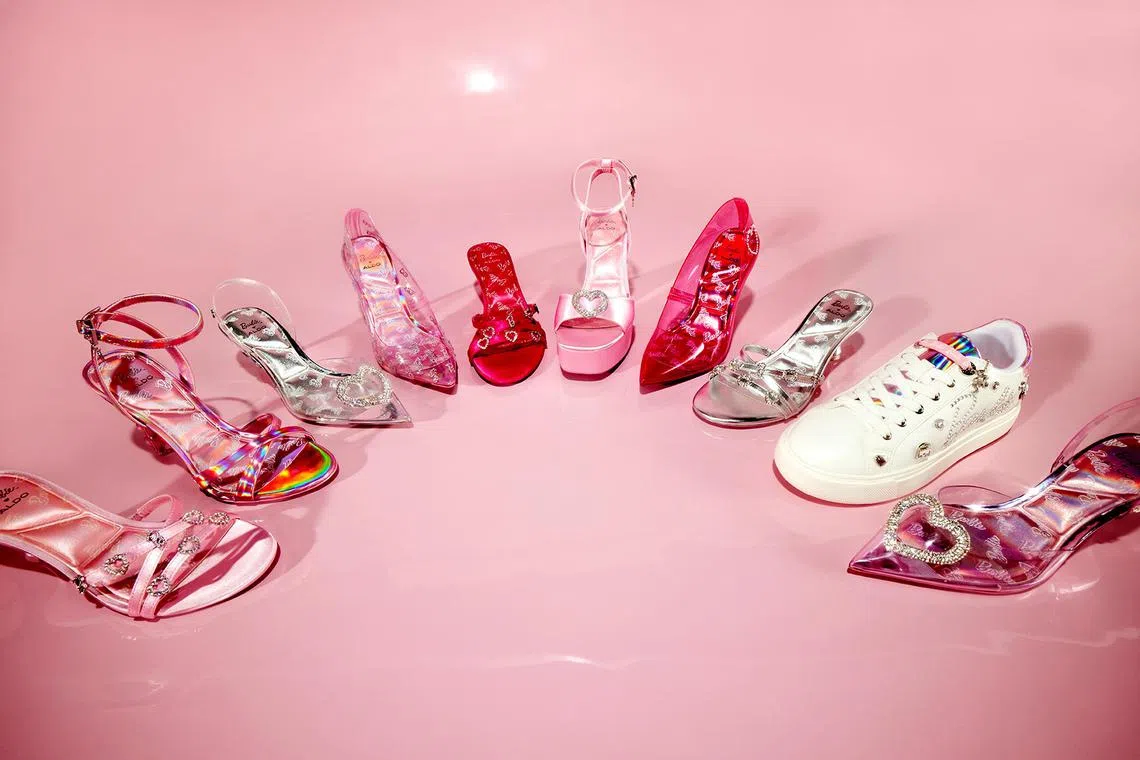 The perspex material in select shoe styles is a nod to actual synthetic Barbie shoes, while also bringing to mind princess-worthy glass slippers.