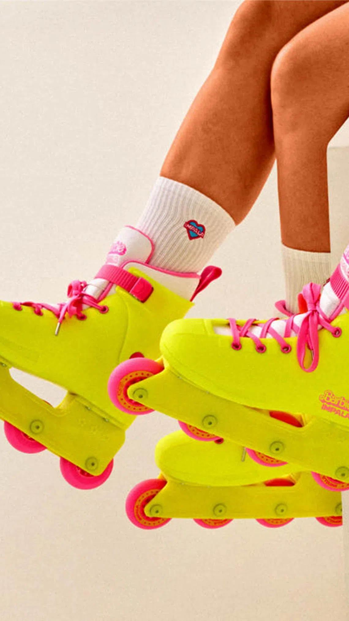 In this official collaboration, American skate brand Impala has released a capsule with the star product being the Lightspeed Inline Skate in Barbie Bright Yellow ($243). As safety comes first, the capsule includes a protective pack of knee, elbow and wrist pads for adults ($84) and kids ($76).