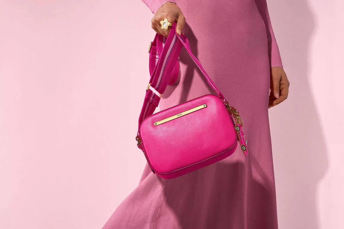 For fans of Fossil’s leather goods, the Liza camera bag ($319) and Penrose wallet crossbody ($299) – made of soft, smooth-grain leather – are available in the iconic shade of pink. You can even emboss the Liza to make it your own.
