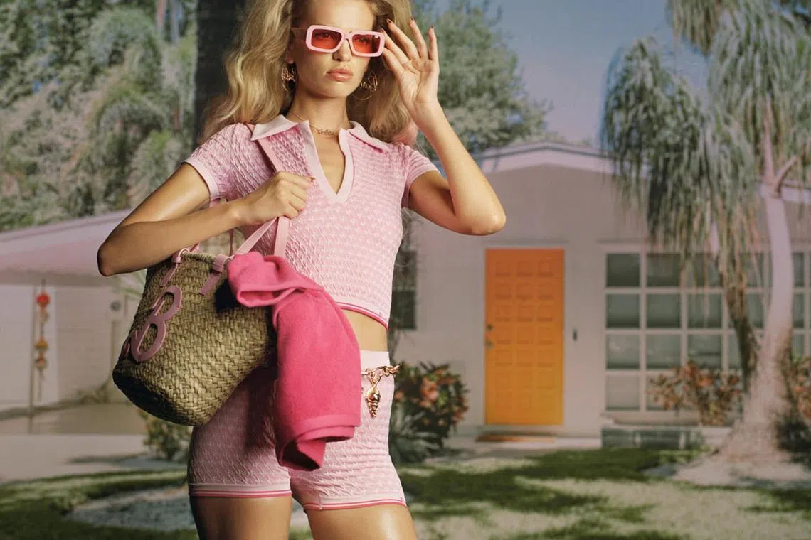 Vibrant hues of pink clash with trendy Y2K elements and bold details including rhinestone embellishments, charms, bejewelled “B”s and Barbie logos.