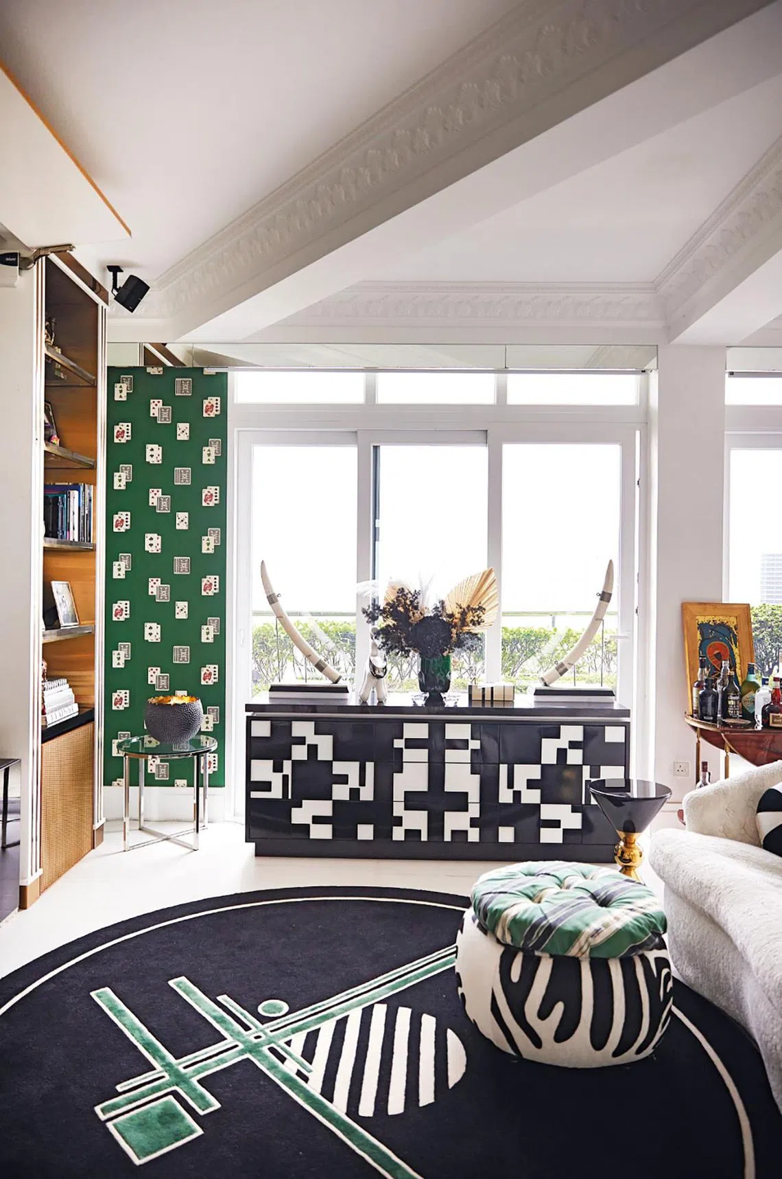 “This is my life by design. The apartment is the perfect expression of my well-honed aesthetic, clean-lined yet maximalist, Art Deco yet exotic.”