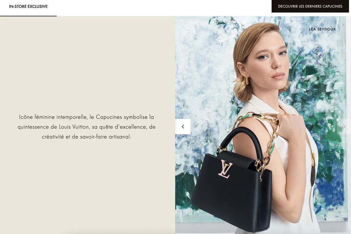 A Louis Vuitton advertisement for a handbag with the actress Lea Seydoux that appears to use part of a painting by Joan Mitchell.