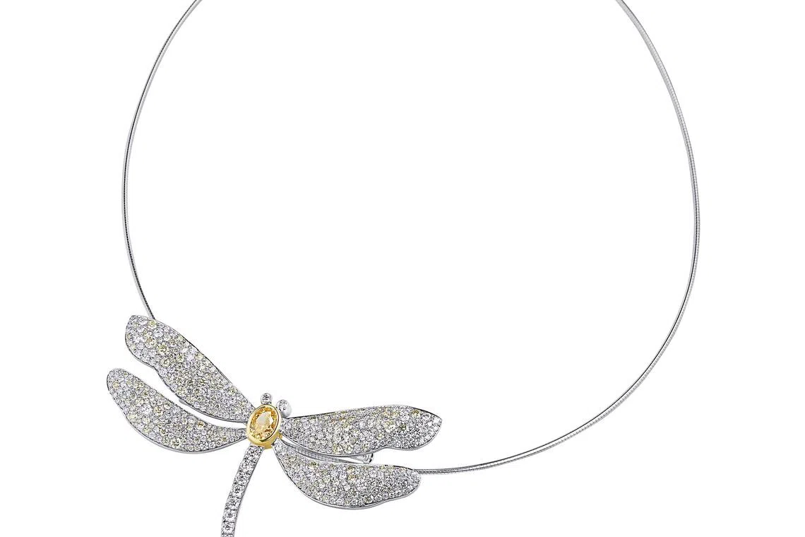This piece by home-grown fine jewellery brand Infiniti Jewels features a fancy, intense 0.80-carat orange-yellow diamond set as a brooch or pendant in the shape of a dragonfly, surrounded by additional diamonds for a sparkling, ethereal effect.