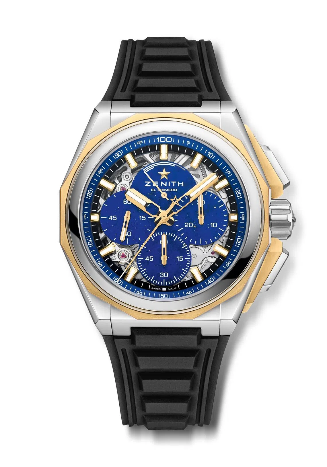 The open-worked display of the Defy Extreme Lapis Lazuli reveals the El Primero 9004.