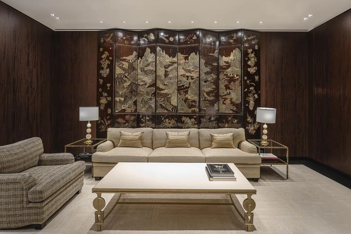 There is also a hidden sanctum called the VIP salon, which can be accessed only through sliding doors just off the lounge area. An antique Coromandel screen hangs over a sofa inspired by the one in the Paris apartment that is said to have been designed by Chanel herself.