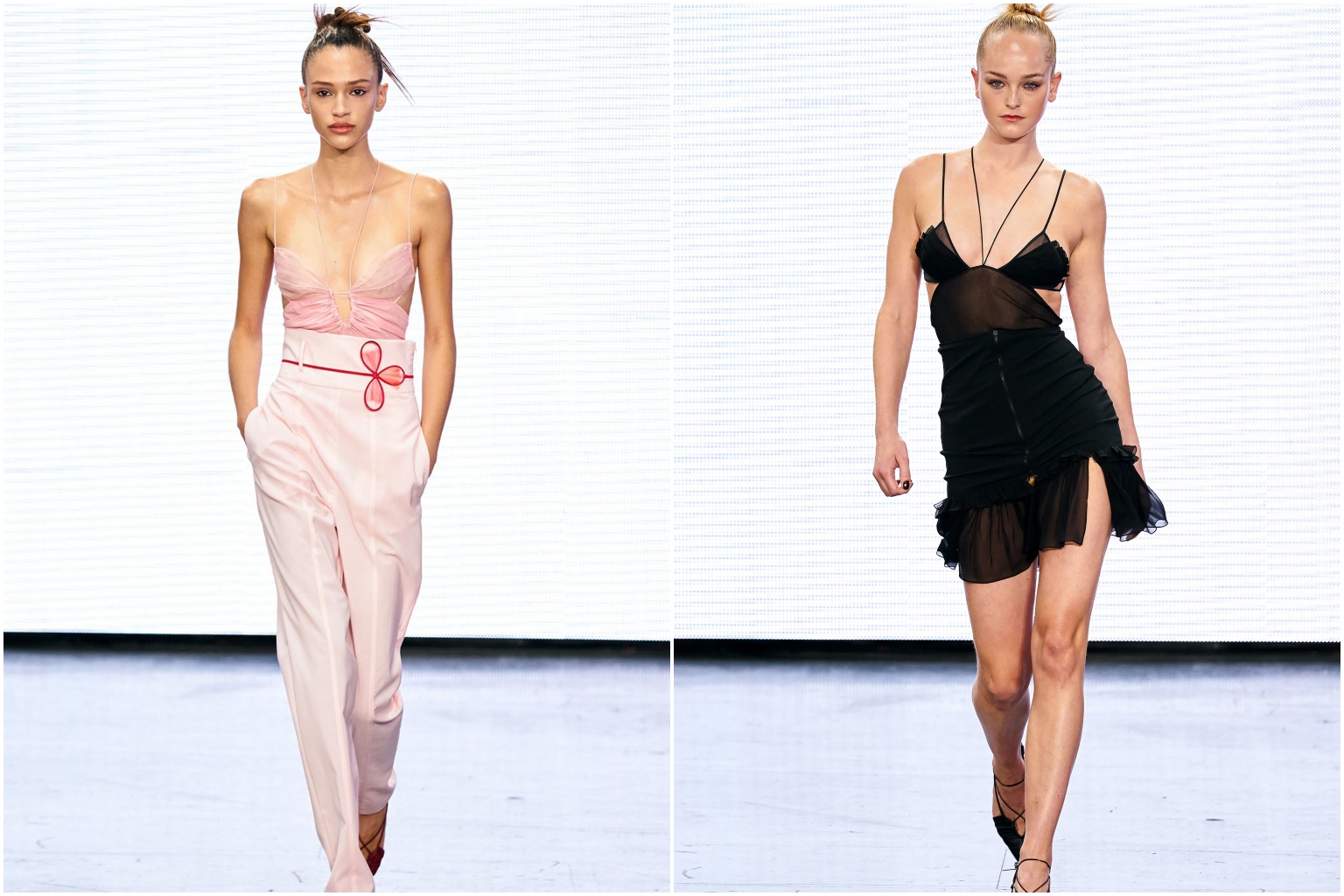 With their delicate criss-crossing straps and cleverly placed French-seamed panels, Dojaka's dresses brilliantly straddle the line between underwear and eveningwear. The clothes are barely there, but what is there is impeccably constructed and engineered to caress the body in all the right places.
