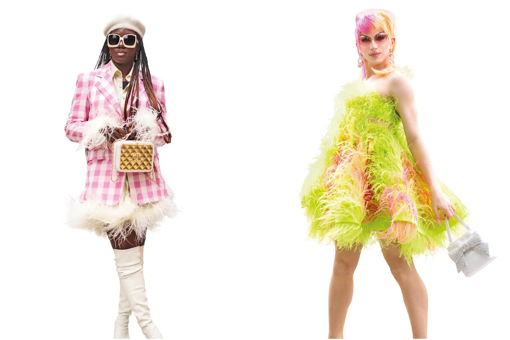 While not everyone can pull off full-on feathered dresses in adventurous highlighter hues, they are easy enough to wear in small doses. Try fluffy plumes embellishing a sheer skirt or peeking out from cuffs and hems to add a touch of va-va-voom appeal to an otherwise simple ensemble.