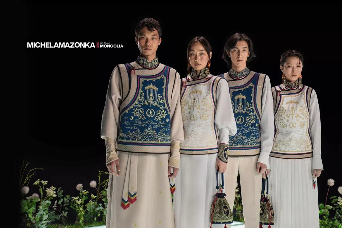 The richly detailed uniforms are designed by Mongolian couture brand Michel & Amazonka, helmed by the sister trio of Michel, Amazonka and Munkhjargal Choigaalaa. Each set took an average of 20 hours to produce, according to the Mongolian National Olympic Committee.