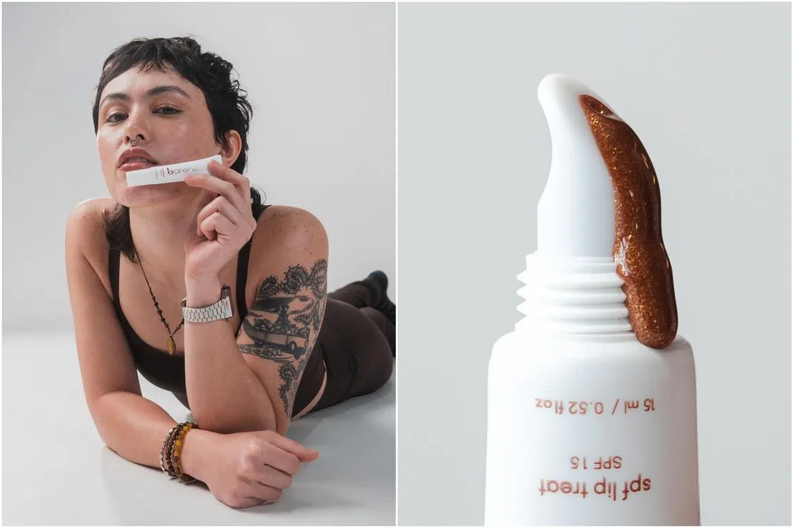 New kid on the block Bareness Skin brings sun protection to the humble lip peptide, with a plumping lip gloss strengthened with SPF 15++ protection.