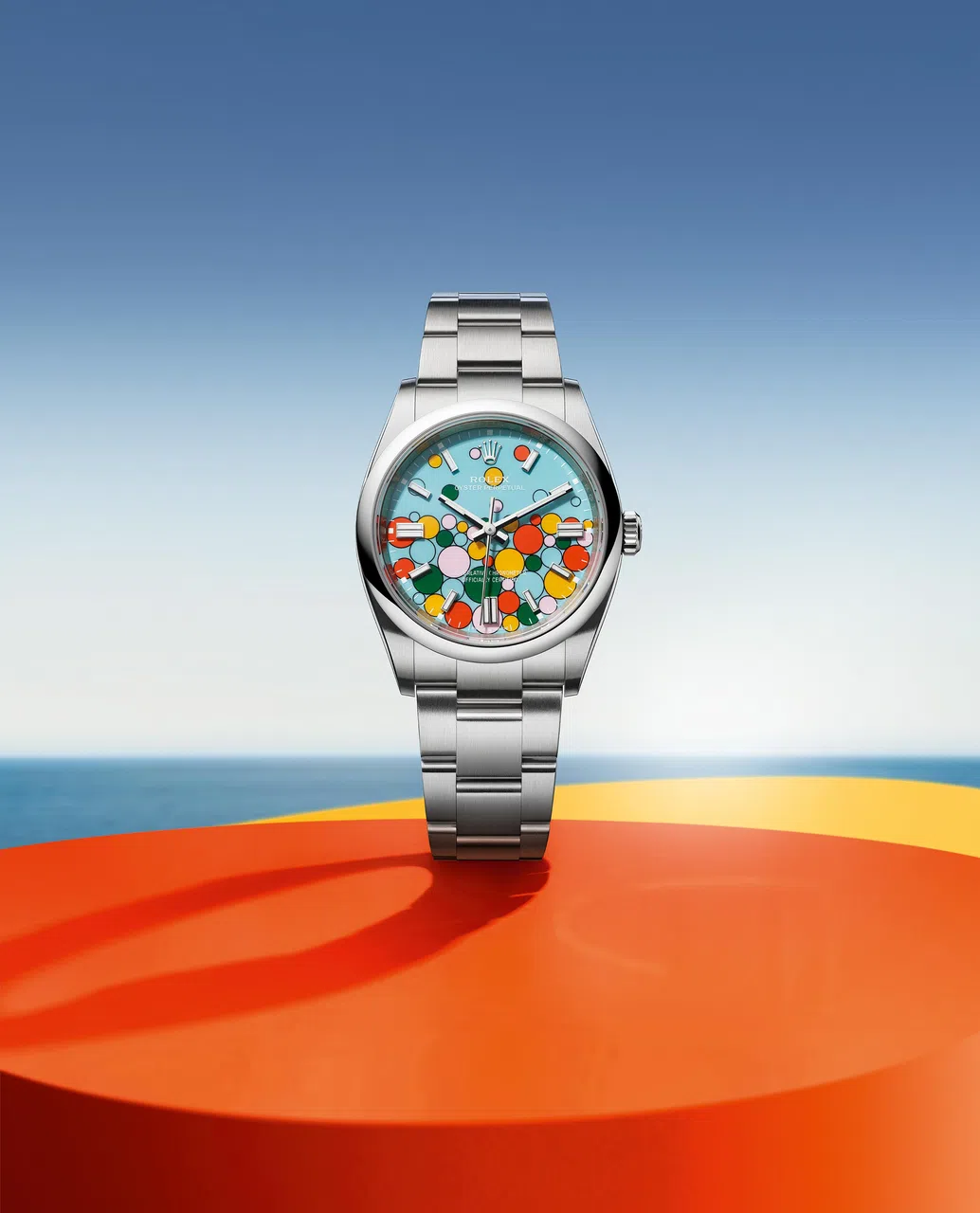 Two years ago, Rolex did the unexpected by releasing a series of Oyster Perpetual models with brightly coloured dials. Think Tiffany blue (the most popular), hunter green, marigold yellow, coral red and pastel pink. They became highly sought after, prompting many other brands to do the same.